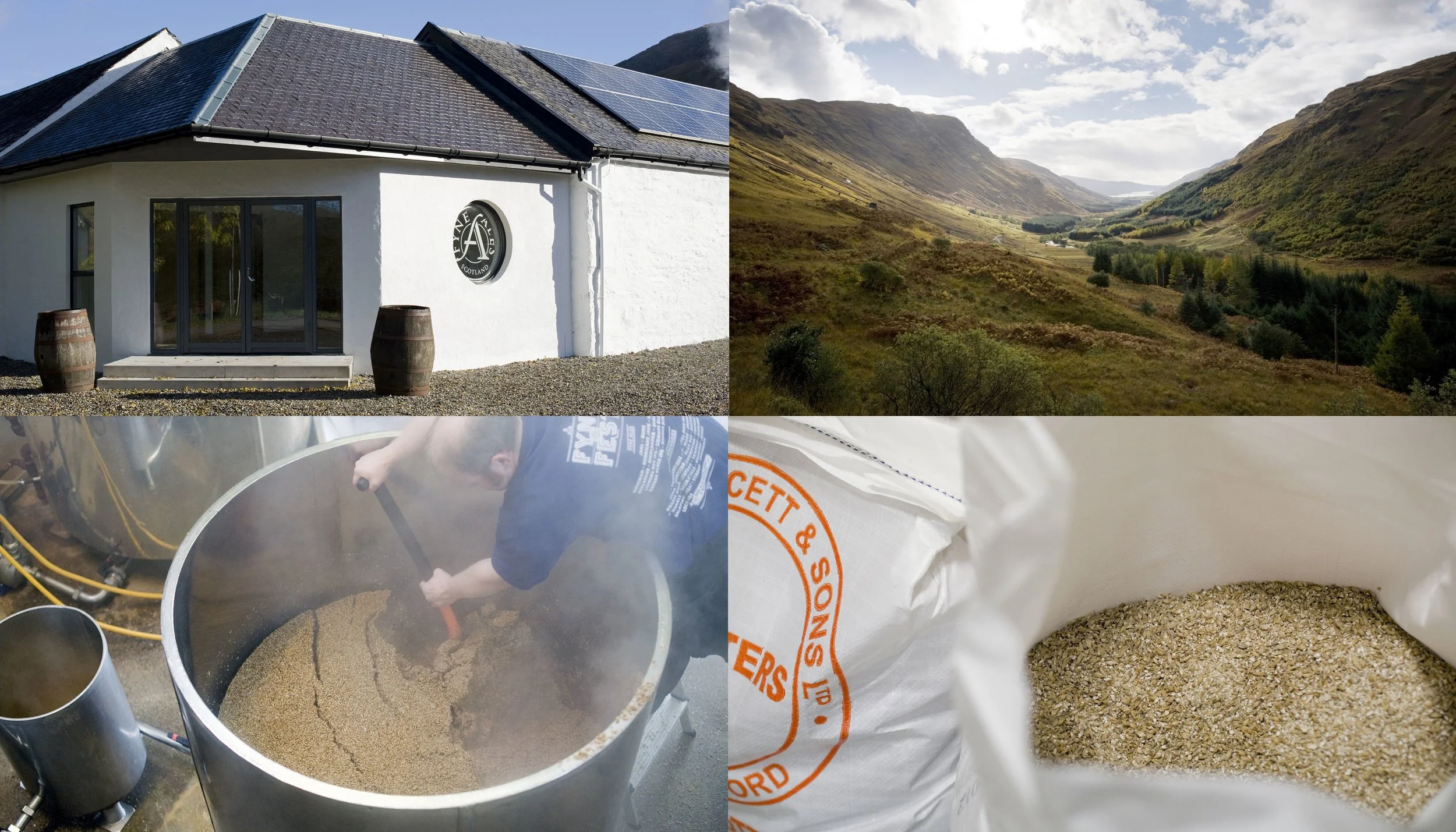 Collage of images showing the surrounding area around the brewery and the ale being created